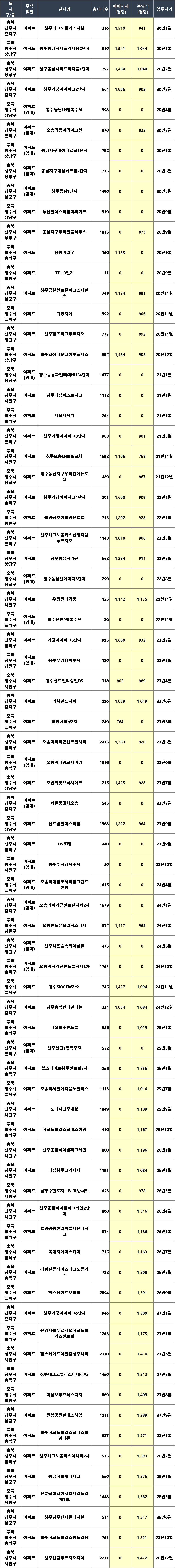 20년 이후 해당 지역의 분양 아파트 상세 list도 같이 공유드립니다.