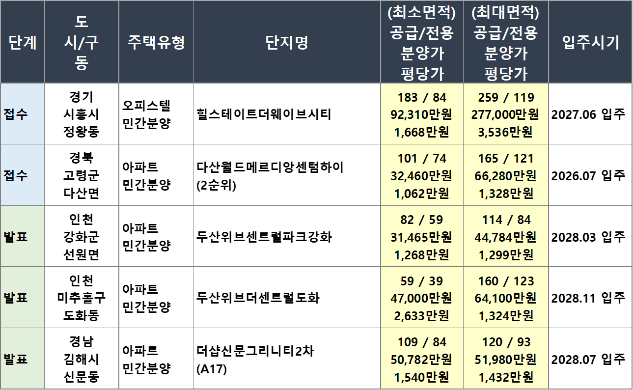 오늘의 아파트 분양 일정 공유드립니다.
