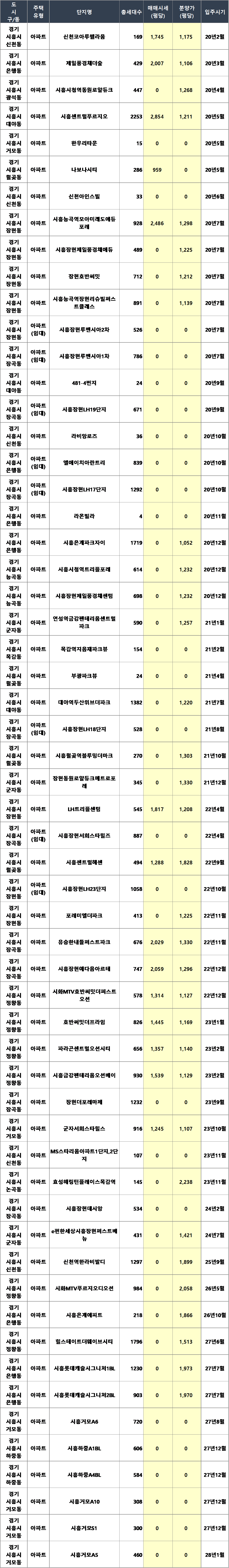 20년 이후 해당 지역의 분양 아파트 상세 list도 같이 공유드립니다.
